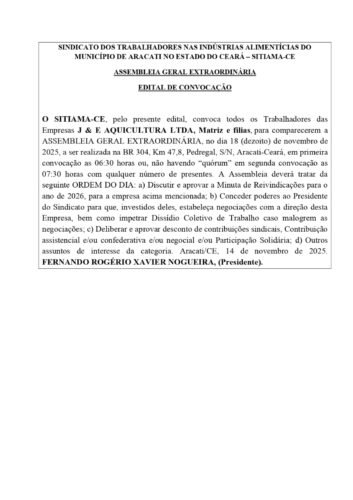 EDITAL DE CONVOCAÇÃO DE ASSEMBLÉIA GERAL EXTRAORDINÁRIA J & E